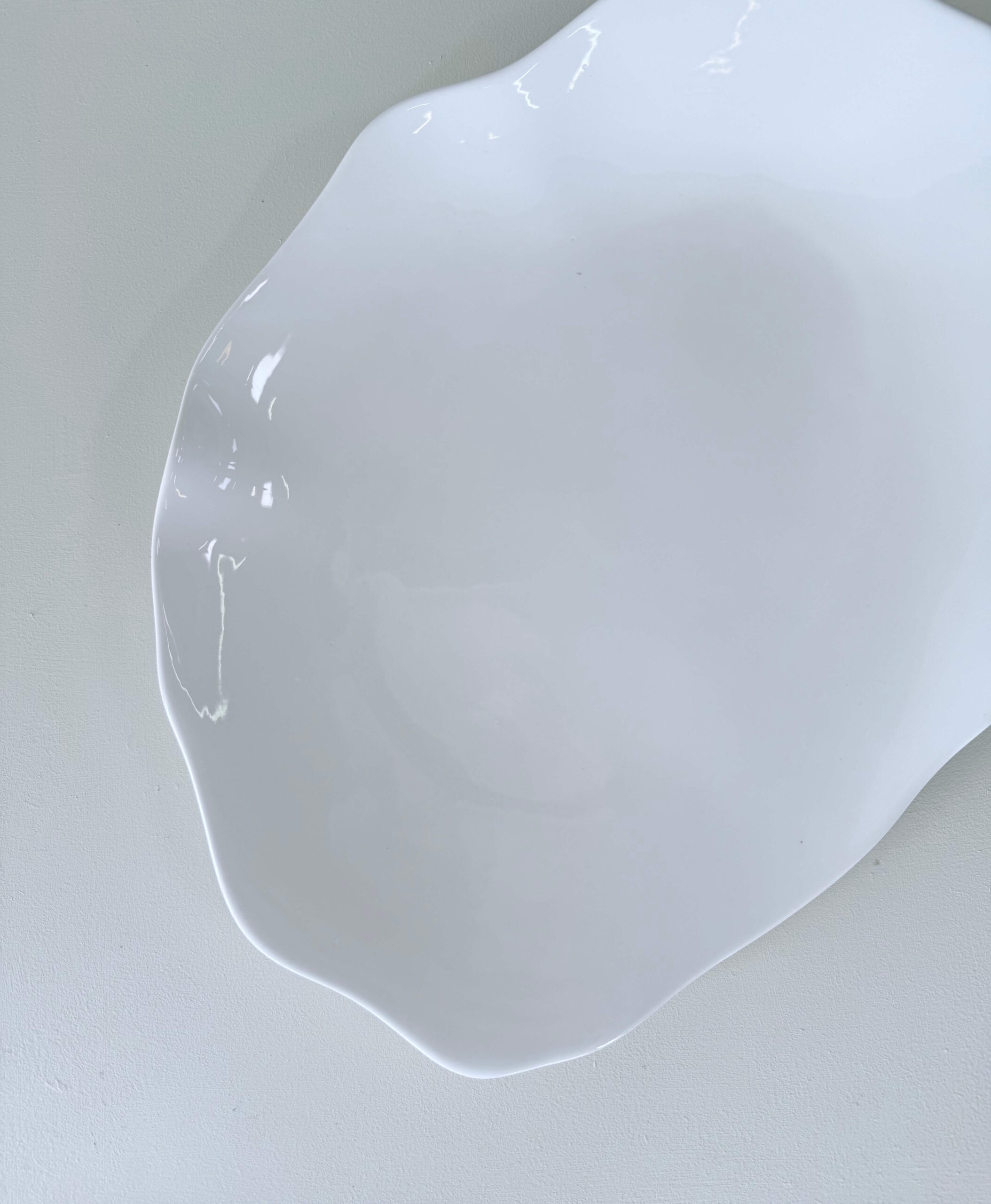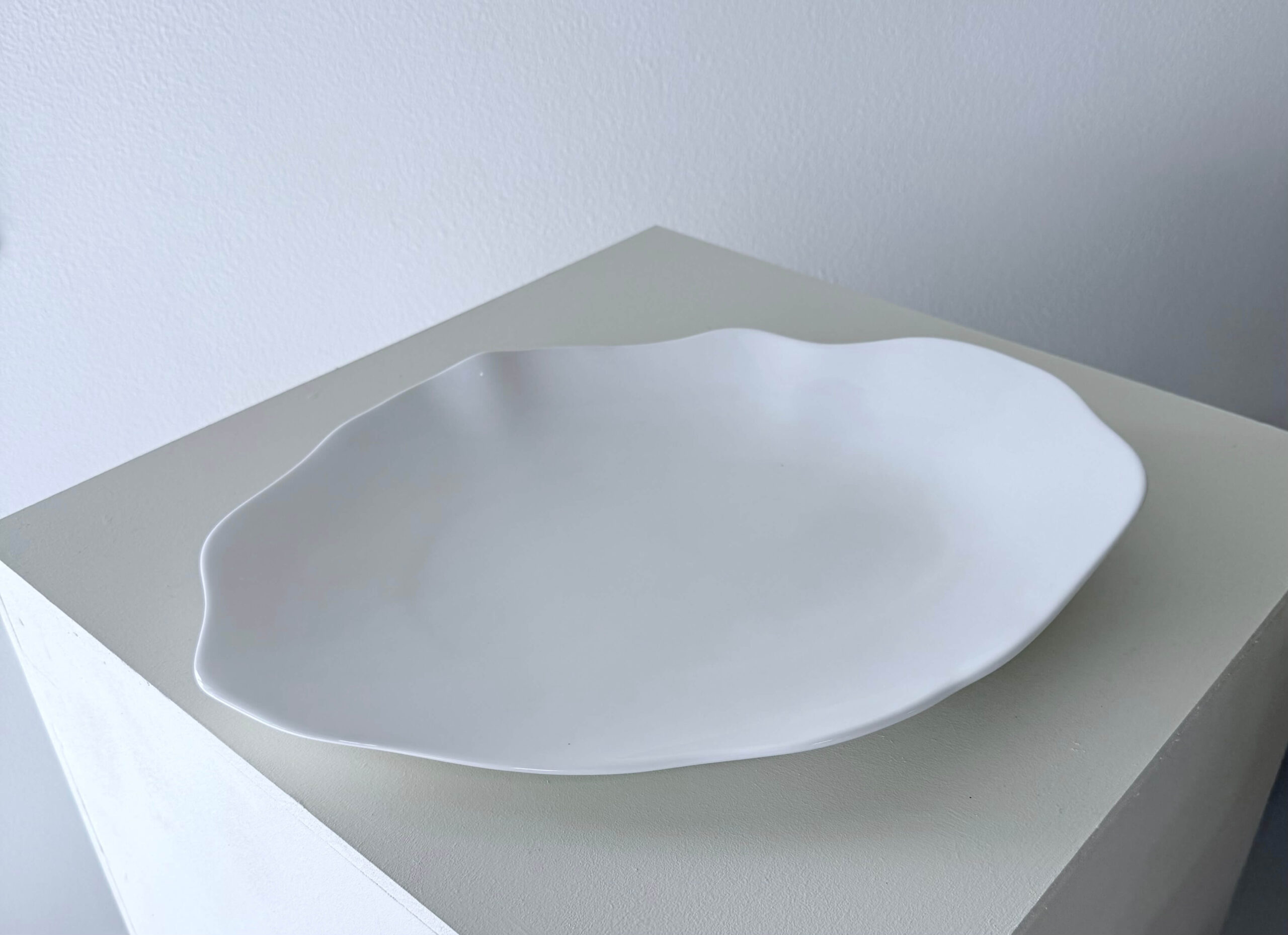 Stort serveringsfad i organisk let design. Tidsløst og moderne stel i hvidt porcelæn.